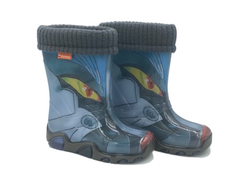Obuwie deszczowe dla dzieci, wykonane z materiału PVC Phtalate Free (bezftalanowe PVC). Obuwie nie zawiera metali ciężkich tj. kadm, nikiel, ołów. Obuwie wyposażone jest w element odblaskowy, a także w praktyczny wyjmowany wkład ocieplający, który można prać w temp. do 40 °C. Idealne w drodze do szkoły czy też podczas zabawy na podwórku.