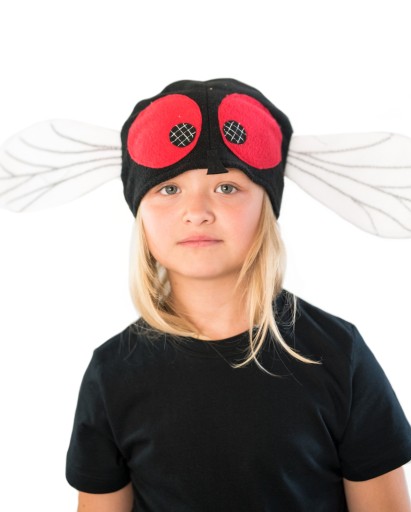 Przebranie w postaci czapki muchy. Czapka posiada z tyłu gumkę. Wyprodukowano w Polsce. Produkt rękodzieło.