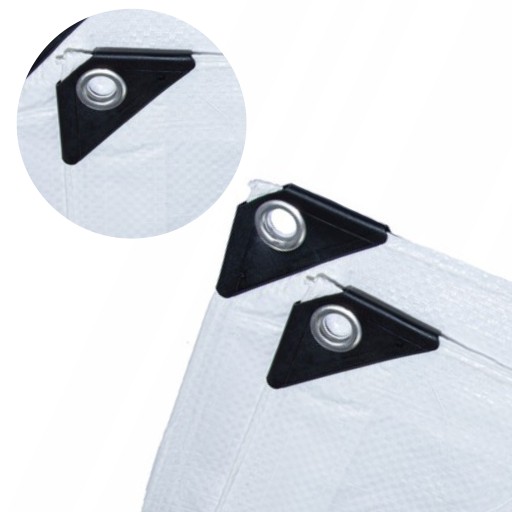 Plandeka posiada aluminiowe oczka o średnicy 12mm (łatwo przełożysz przez nie sznurki), które rozstawione są na całej długości płachty co 100 cm od siebie. Pozwalają one na wygodne mocowanie plandeki oraz na proste rozwieszenie jej. Dodatkowo na rogach plandeki znajdują się grube wstawki z tworzywa sztucznego, które mają za zadanie stabilizować narożniki.