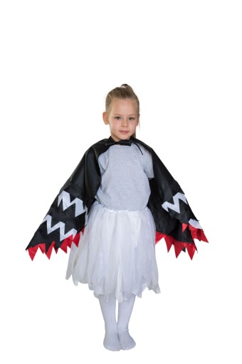 Przebranie dzięcioła lub gila w postaci skrzydeł w kolorze czarnym z elementami bieli i czerwieni.Rozpiętość skrzydeł około 130 cm.