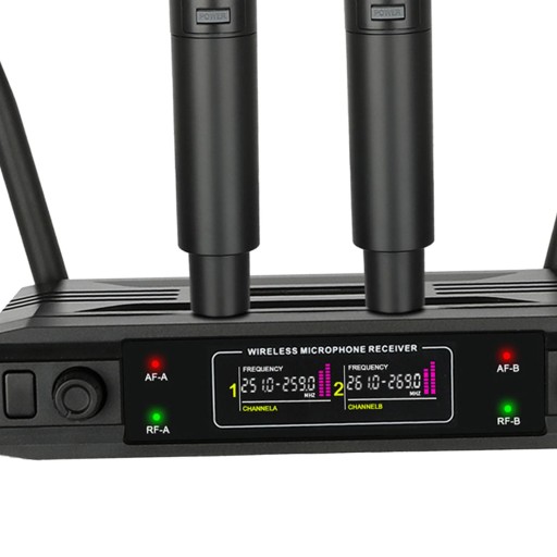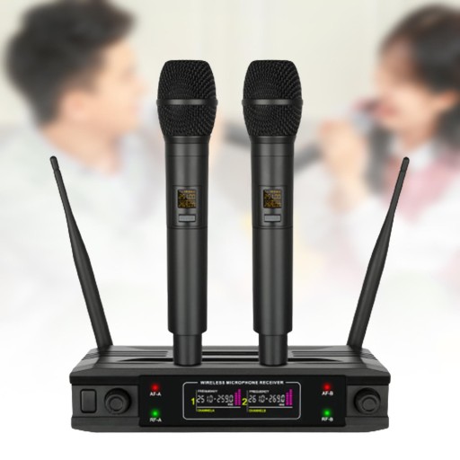 Karaoke bezprzewodowy system mikrofonowy VHF Mic dwukanałowy, czarny profesjonalny