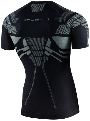 Perfekcyjne wykonanie: przyjazna ciału średniej grubości dzianina, nie powoduje podrażnień, specjalne strefy wentylacyjne w miejscach wzmożonej potliwości wspomagają odpowiednią cyrkulację powietrza, płaskie szwy, bezuciskowe ściągacze, specjalne strefy RIB na ramionach i wzdłuż boków zapewniają doskonałe dopasowanie do ciała, duża elastyczność dzianiny pozwala na swobodę ruchów, dynamiczny wzór podkreślający sylwetkę, klasyczny krój z krótkim rękawem; wyprodukowana w 100% w UE.