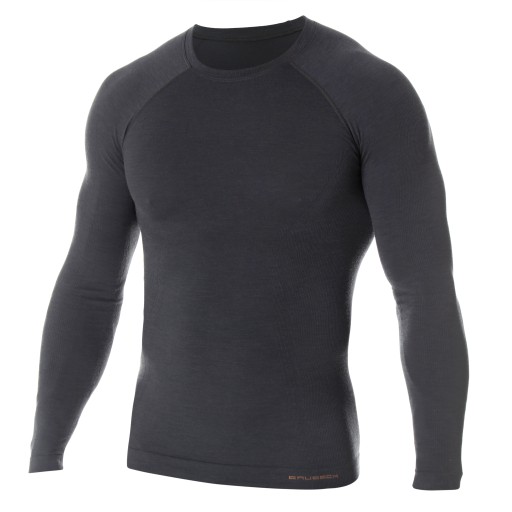 Koszulka męska Brubeck ACTIVE WOOL z długim rękawem Bielizna termoaktywna Wełna Merino grafitowy