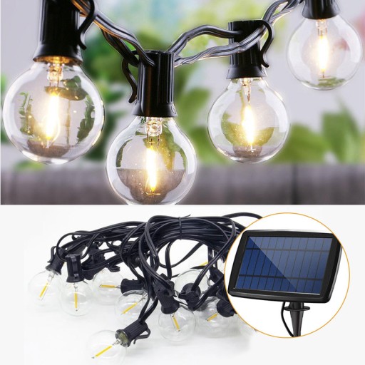 Solarna lampa łańcuchowa zewnętrzna G40 ma 5,5 m długości, 10 sztuk żarówek kulowych.Światła zasilane są energią słoneczną.Żarówki LED o wysokiej wydajności oszczędzają ponad 90% energii w porównaniu z żarówkami.Słoneczne zewnętrzne oświetlenie łańcuchowe automatycznie włącza się w nocy i wyłącza w ciągu dnia.