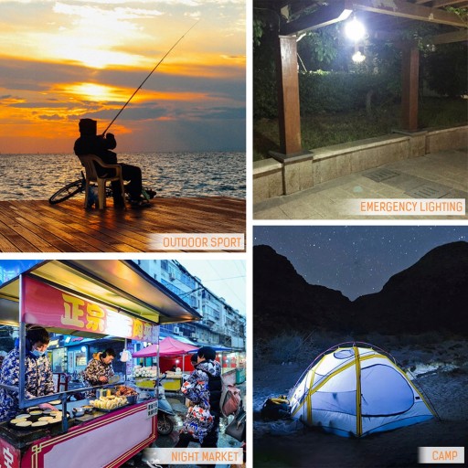 1. Żarówka awaryjna: Obróć żarówkę w przypadku awarii zasilania. Może być również używana jako podręczna latarka lub lampa przewodnia do ładowania w dowolnym momencie. Zawiera jasne, białe, trwałe diody LED.