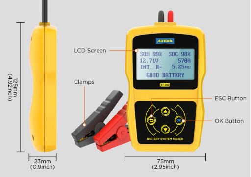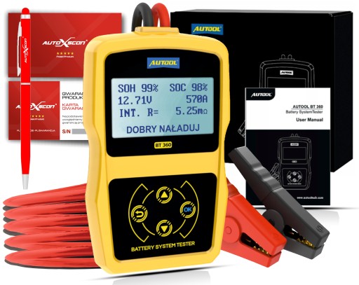 ТЕСТЕР АККУМУЛЯТОРА AUTOOL BT360 + чехол ЯЗЫК PL РУКОВОДСТВО PL + РУЧКА
