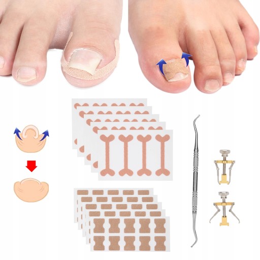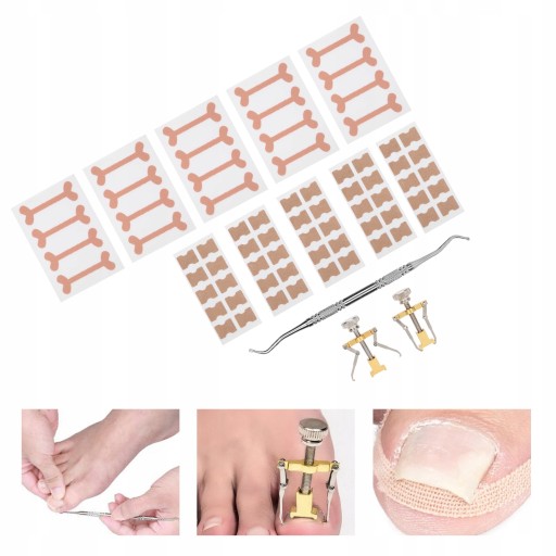 ⏺Nazwa: 5 bez kleju na białym tle + 5 wrastających bandaży + 2 szelki + zbieracze do paznokci 13 zestawów