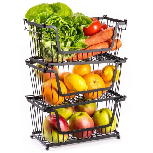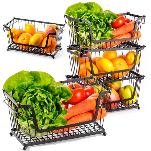 Koszyk na owoce i warzywa metalowy czarny piętrowy do piętrowania 31x17,5x15,5 cm