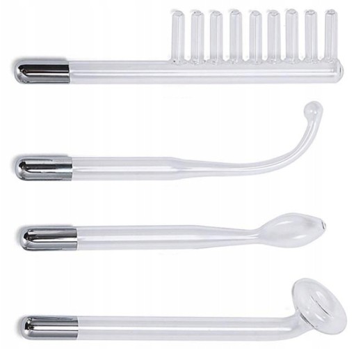 Urządzenie D’Arsonval posiada w zestawie 4 szklane peloty, do zastosowania na różnych powierzchniach ciała: