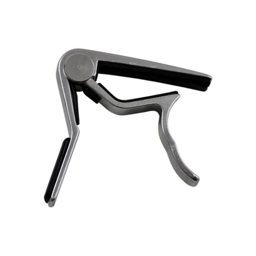 Lekki, solidny kapodaster EVER PLAY w kolorze chromowanym z mocną i trwałą sprężyną gwarantującą odpowiedni docisk wszystkich strun do gryfu.