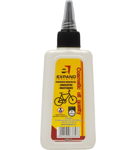 - Olej wazelinowy w oliwiarce przeznaczony do smarowania elementów precyzyjnych maszyn, przerzutek czy linek.