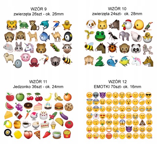 W ramach tej aukcji można wybrać nr innych naklejek z poniżej przedstawionych 18 różnych zestawów - wszystkie one są drukowane na arkuszach formatu A5, a wysokości pojedynczych naklejek opisane są przy każdym prezentowanym wzorze.
