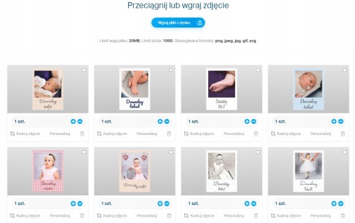 Sam przygotujesz w naszym kreatorze pakiet fotografii z napisami i tłem do wyboru. Możesz to zrobić również w swoim smartfonie. Po złożeniu zamówienia przesyłanie odbitek do laboratorium odbywa się przez nasz kreator - szczegóły poniżej.