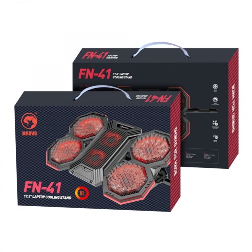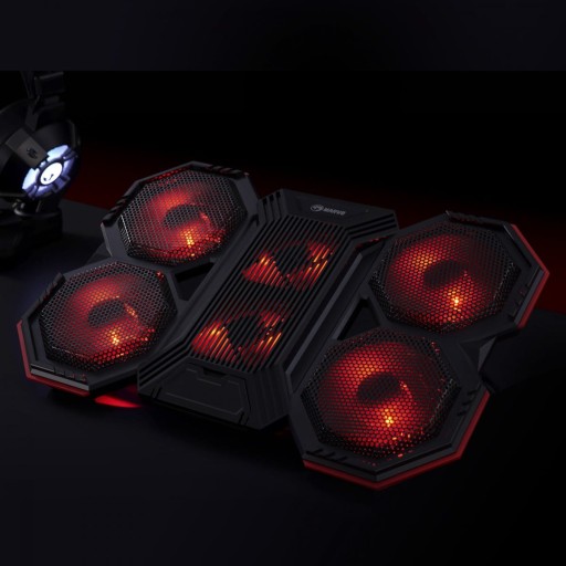FN-41 posiada aż 6 symetrycznie rozmieszczonych wentylatorów. Układ ten pozwalana odbiór nadmiar ciepła niezależenie do konstrukcji i usytuowania CPU i GPU w laptopie, a przy tym nie wytwarza denerwującego głośnego szumu. Dzięki konstrukcji zapewniającej optymalny przepływ powietrza, możesz być pewien, że Twój laptop nie przegrzeje się nawet podczas długich rozgrywek LAN, a wyjątkowy gamingowy design i czerwone podświetlenie produktu nada każdemu miejscu pracy unikatowy charakter.
