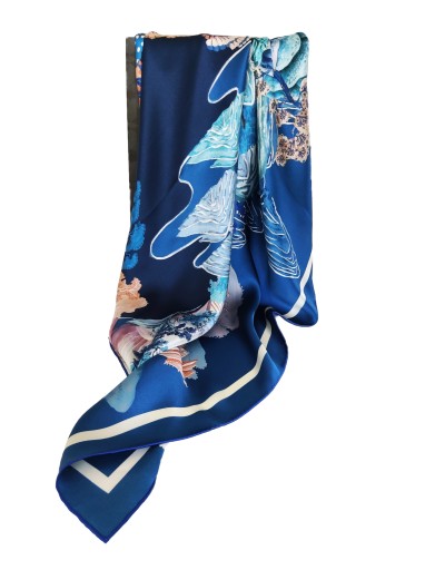 Przepiękna jedwabna chusta, marki LaDorena® wykonana z najwyższej jakości naturalnej ciężkiej satyny jedwabnej o rzadko dostępnej grubości aż 14 M/m, Wymiary 90x90 cm. Chusta zachwyci każdą elegancką kobietę.