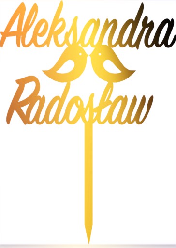 W wiadomosci dla sprzedającego podczas składania zamówienia prosimy o podanie IMION, które maja być umieszczone na topperze, np. Aleksandra Radosław