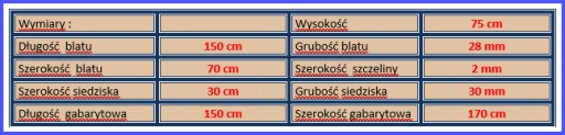 Blat stołu i siedzenia wykonane są z tarcicy bezsęcznej .