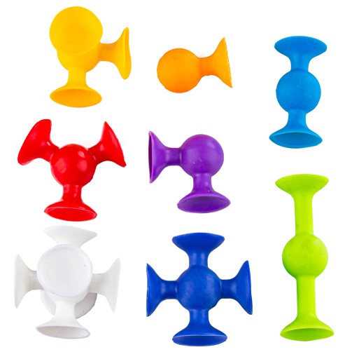 - 93 sztuki przyssawek w 8 różnych kształtach i kolorach,