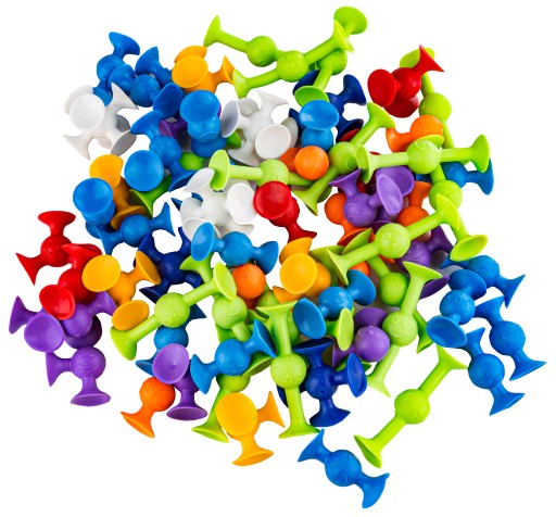 Przyssawki są elastyczne, wyginają się w różne strony i pozwalają na budowanie dowolnych układów. Eksperymentuj i sprawdź jak wesołe przyssawki zabawią dziecko w wannie, samochodzie przy stole i gdzie tylko zechcesz :) To super zabawa a po odklejeniu zabawka nie pozostawia żadnych śladów.