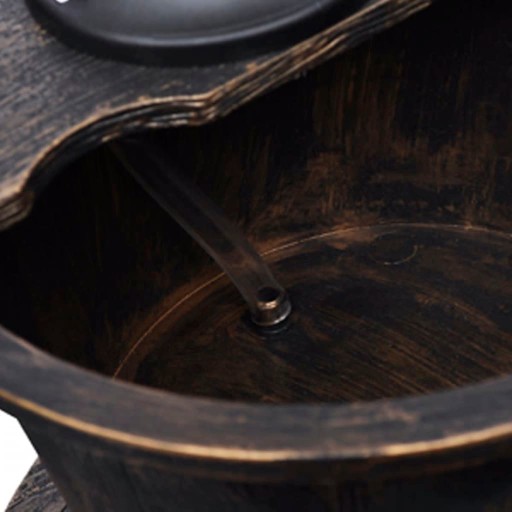 Fontanna w stylu vintage prezentuje dekoracyjną formę studni z pompą. Można ją szybko i łatwo zmontować. Wyposażona jest w sprawnie działającą pompę wodną, która wprowadza wodę w ciągłą cyrkulację.