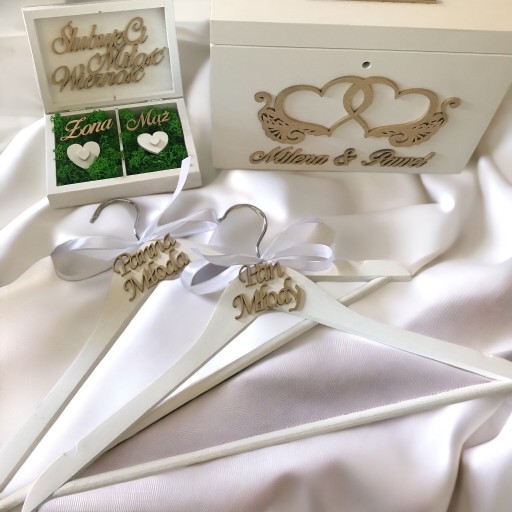 свадебный набор, коробка для конвертов, обручальные кольца, вешалки.
