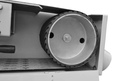 2 koła gumowane w standardzie zapewniające brak poślizgu taśmy szlifującej!