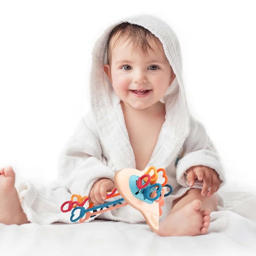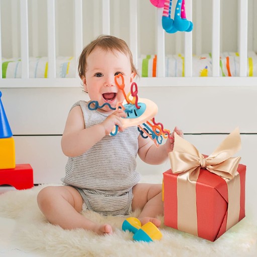- Zabawka do żucia: zabawka Montessori z miękkim silikonowym sznurkiem jest bardzo odpowiednią zabawką dla ząbkujących dzieci w wieku 6-12 miesięcy. Zabawka do żucia może złagodzić dyskomfort dziąseł dziecka podczas ząbkowania i uspokoić emocje dziecka.