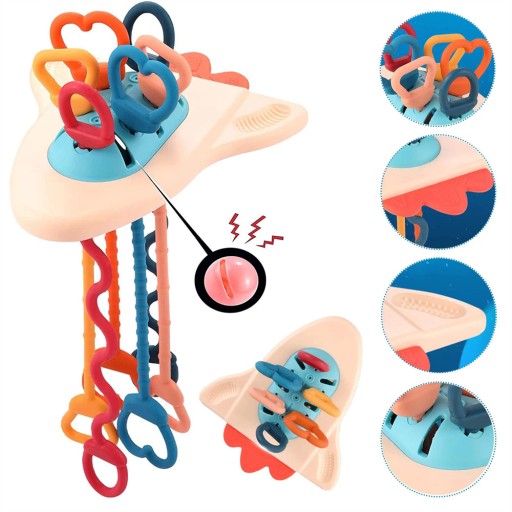 - Zabawka sensoryczna dla niemowląt: zabawka statek kosmiczny ma 6 różnych kolorów i kształtów sznurków, które bardzo dobrze przyciągają uwagę dziecka. Jest pomocny w rozwijaniu wzroku dzieci i dobrym ćwiczeniu elastyczności i koordynacji ręka-oko dziecka.