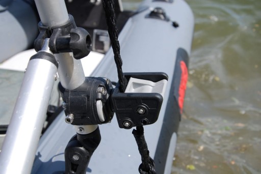 Mechanizm blokujący utrzymuje kotwicę w podniesionej pozycji bez potrzeby dodatkowego zabezpieczenia. Do blokady można użyć 32mm taśmy lub 10 mm liny.