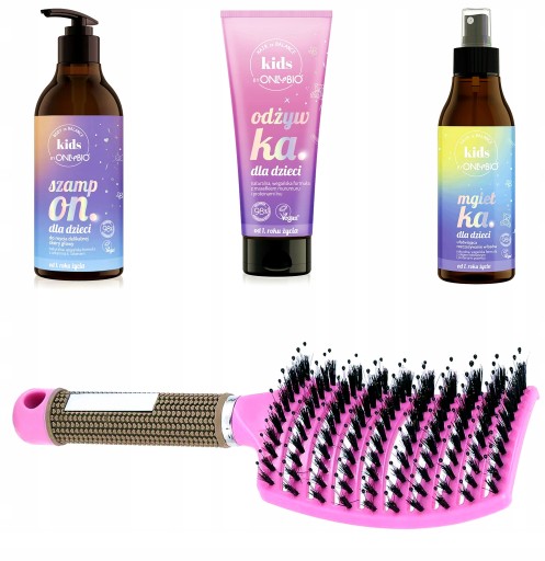 SZAMPON + ODŻYWKA+ MGIEŁKA UŁATWIAJĄCA ROZCZESYWANIE + SZCZOTKA Z DZIKA RÓŻOWA