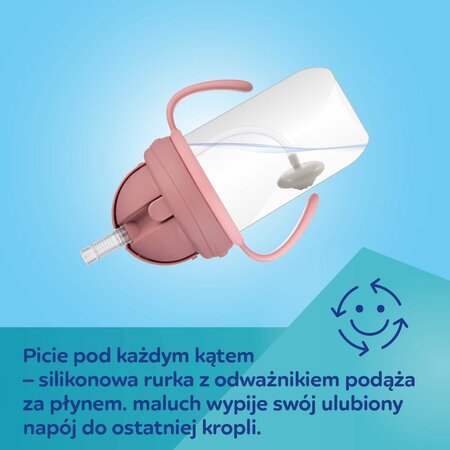 - Unikalna silikonowa rurka z odważnikiem podąża za płynem, dzięki czemu Maluch wypije swój ulubiony napój do ostatniej kropli, niezależnie od tego pod jakim kątem przechyli kubeczek.