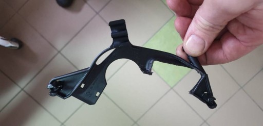 Kolejne 3 zdjęcia przedstawiają jak zmodyfikować plastikowy element, który prowadzi przewody elektryczne z prawej strony motocykla. Jest to konieczne dla osłon, aby była w odpowiedniej pozycji.