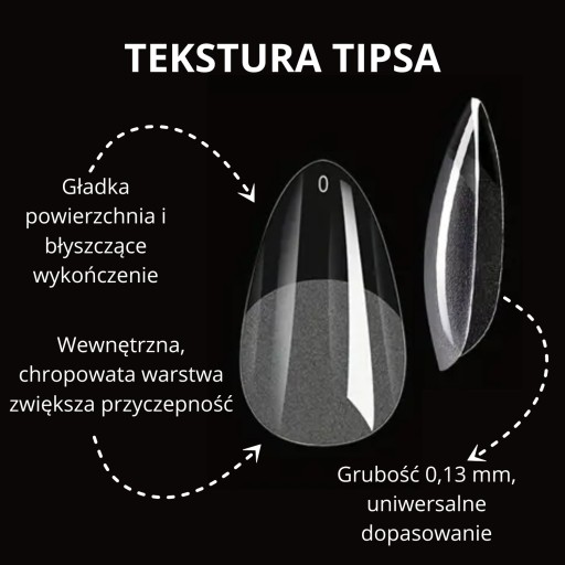 ✅ Stylizacja wykonana przy użyciu tych tipsów będzie dłużej się utrzymywać, nie tracąc na estetyce. Zminimalizowane ryzyko złamania tipsa czyni je idealnym rozwiązaniem zarówno na co dzień, jak i na specjalne okazje.