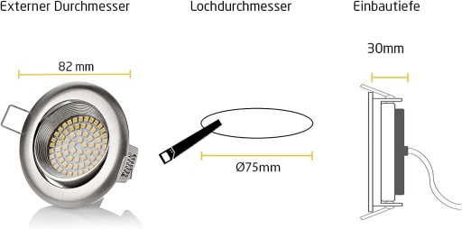 - Dane techniczne | Moc: 3,5 W | 320 lumenów | Napięcie: 230 V (nie jest wymagany transformator) | Współczynnik oddawania barw > 80 Ra (sprawia, że kolory oświetlonych przedmiotów wyglądają naturalnie/wiernie) | duży kąt świecenia 120° | Temperatura barwowa: 3000 K (ciepła biel).
