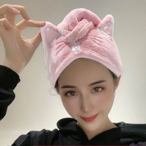 ТОЛСТОЕ, БОЛЬШОЕ Быстросохнущее полотенце, шапочка-тюрбан для волос, кошачьи ушки, розовый