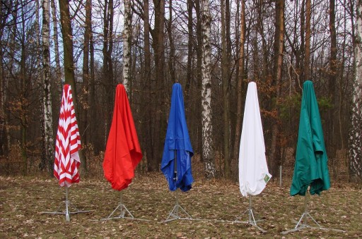 Parasol jest wykonany z tkaniny poliestrowej podwójnie impregnowanej, wodoszczelnej, odpornej na promienie UV. Gramatura tkaniny wynosi 225 g/m2. W sprzedaży posiadamy różne kolory parasoli.