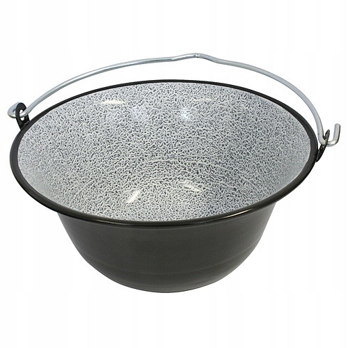 - Wysokiej jakości kociołek emaliowany 16 litrowy, doskonale nadający się na piknik, dłuższą wyprawę, kemping, łatwy do podwieszenia na trójnogu