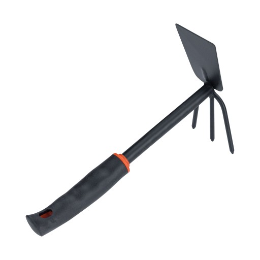 Motyka dwustronna to narzędzie niezbędne w każdym ogrodzie. Narzędzie to składa się z długiego, prostego trzonka oraz dwustronnego zakończenia - łopatki oraz trzech pazurków, które ułatwia pracę zarówno w warunkach suchych, jak i mokrych.