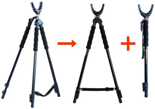 Quest T62U to trójnóg, dwójnóg i monopod w jednym wytrzymałym pastorale wykonanym ze stopu aluminium. Posiada elementy z miękkiej pianki, wyprofilowany uchwyt i antypoślizgowe gumowe stopki. Odkręcana podpórka w kształcie "U" posiada gumowe wypustki i obraca się 360° pozwalając na oddanie strzału pod dowolnym kątem bez konieczności przestawiania pastorału. Po jej demontażu na uniwersalnej śrubie o gwincie 1/4" można zamocować lunetę, aparat fotograficzny lub kamerę. Quest T62U jest idealny w podróży: waży blisko 1 kg, a po złożeniu mierzy 70 cm. Łatwa blokada nóg pozwala na szybką regulację wysokości.