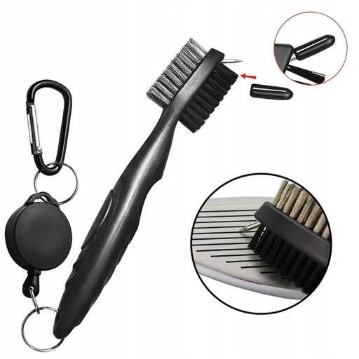 Szczotka Do Kijów Golfowych Z Karabińczykiem Do Czyszczenia Rowków Do Akcesoriów Golfowych Czarna