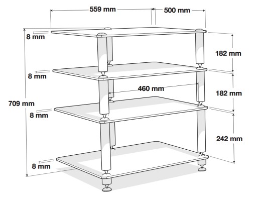 - Wysokość między półkami: (a) 182 mm - (b) 182 mm - (c) 242 mm