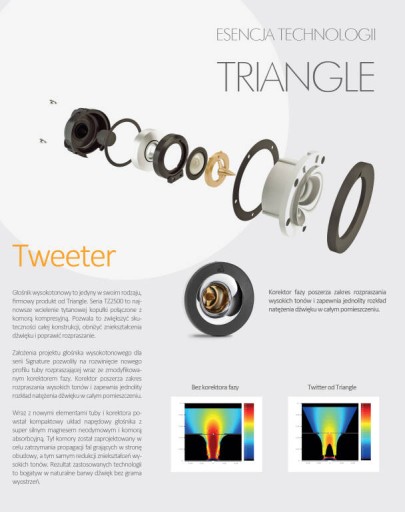 Aby przygotować projekt akustyczny Signature zaangażowano doń najnowsze zdobycze technologii, które uczyniły z Triangle liderem francuskiego rynku kolumn głośnikowych. Wśród najważniejszych technologii warto wymienić: