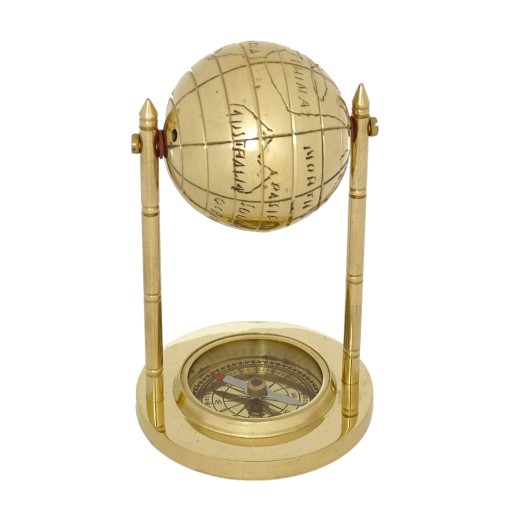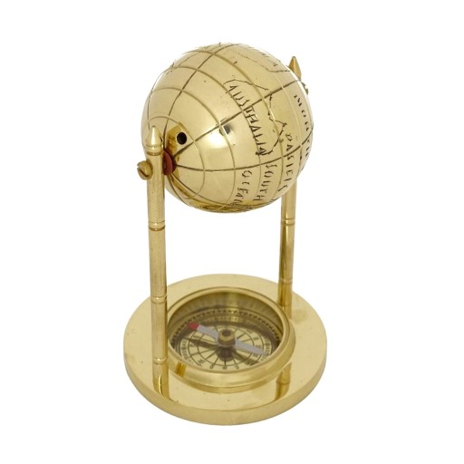 Dekoracyjny Globus mosiężny z kompasem to świetny gadżet na biurko zapalonego podróżnika. Wykonany z mosiądzu i utrzymany w złotawej kolorystyce globusik znajdzie swoje miejsce w wielu aranżacjach i wniesie globtroterskiego ducha do czterech kątów.