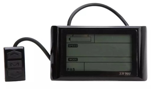 - monitora na którym wyświetlana jest prędkość, poziom naładowania akumulatora, całkowita ilość przejechanych kilometrów, moc aktualnie podawaną przez sterownik do silnika, poziom zasilania (możliwych jest 5 stopni),