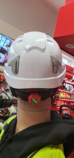 Hełm ochronny z PC. Nie posiada daszka dla lepszej widoczności w pionie. Bardzo lekki. Więźba z poliamidu z 6 punktami mocowania. Obwód głowy od 53 do 66 cm. Sprzedawany z paskiem podbródkowym. Zaprojektowany specjalnie do pracy na wysokości.