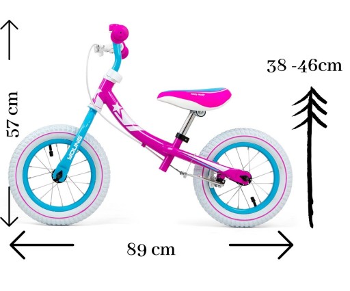 ➡️W rowerku zastosowany został tylny hamulec ręczny typu V-brake, dzięki czemu w znacznym stopniu zwiększony został poziom bezpieczeństwa. Hamulec pozwala zatrzymać rowerek w dogodnym momencie. Natomiast duże, bieżnikowane, pompowane opony zapewniają stabilność oraz amortyzację na każdej powierzchni, a łożyskowane koła zwiększają komfort podczas jazdy