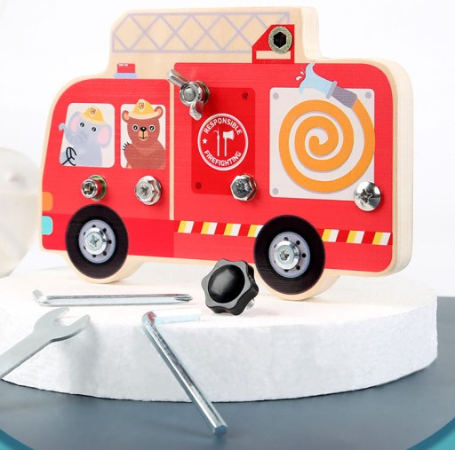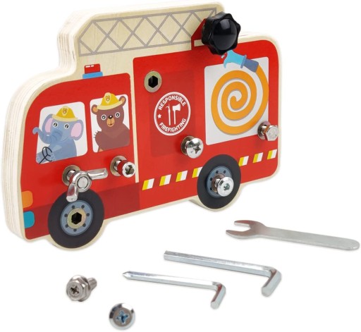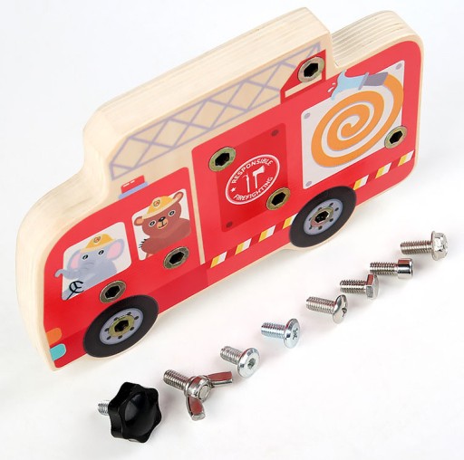 Podstawa w postaci wozu strażackiego wykonana jest z trwałego drewna, które zostało precyzyjnie wyszlifowane aby wszystkei rogi były gładkie i nie zraniły rączek dziecka.