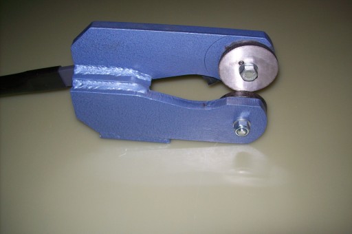 Nożyce krążkowe NK-2 służą do cięcia blachy stalowej i z metali kolorowych po liniach prostych i łukowych. Urządzenie mocuje się do stołu przy pomocy śrub.Napęd górnego krążka tnącego jest realizowany przy pomocy mechanizmu zapadkowego. Krążek ten posiada nacięte ząbki które ciągną blachę.Noże krążkowe wykonane są ze stali narzędziowej i poddane obróbce cieplnej.
