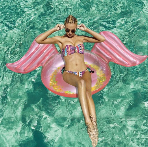 Koło dmuchane w niebanalnym kształcie, wykonane z wysokiej jakości plastiku PCV, gwarantującego wytrzymałość.