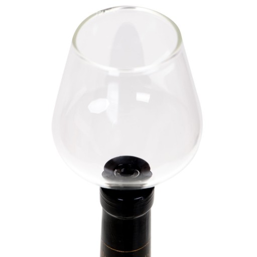Niezwykły kieliszek, dzięki któremu możemy delektować się ulubionym winem bezpośrednio z butelki. Po co dolewać i ograniczać się, jak można raczyć się bezpośrednio z butelki i w dodatku bardzo kulturalnie. Jak szaleć, to szaleć :) Kieliszek zamiast nóżki posiada specjalną silikonową zatyczkę, która zapobiega rozlewania się trunku. Bardzo użyteczny gadżet, który można wykorzystać jako zabawny sprzęt na imprezie, ale również wygodne rozwiązanie na miłe wieczory z winem.